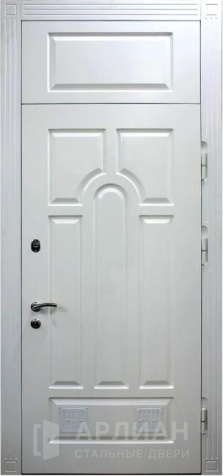 Морозостойкая белая входная дверь с фрамугой для дома №32