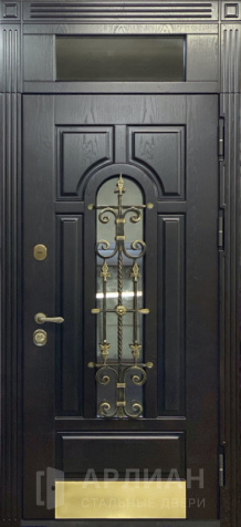 Металлическая входная дверь в коттедж с верхней фрамугой №10