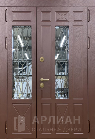 Двустворчатая входная дверь со стеклопакетом №18