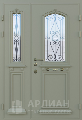 Арочная двустворчатая стальная дверь для загородного дома №125