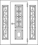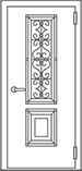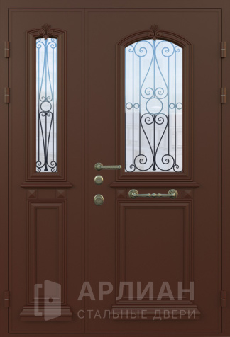 Двустворчатая дверь со стеклом и кованной решеткой №2
