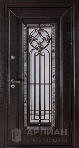 Входная дверь со стеклом и ковкой №54
